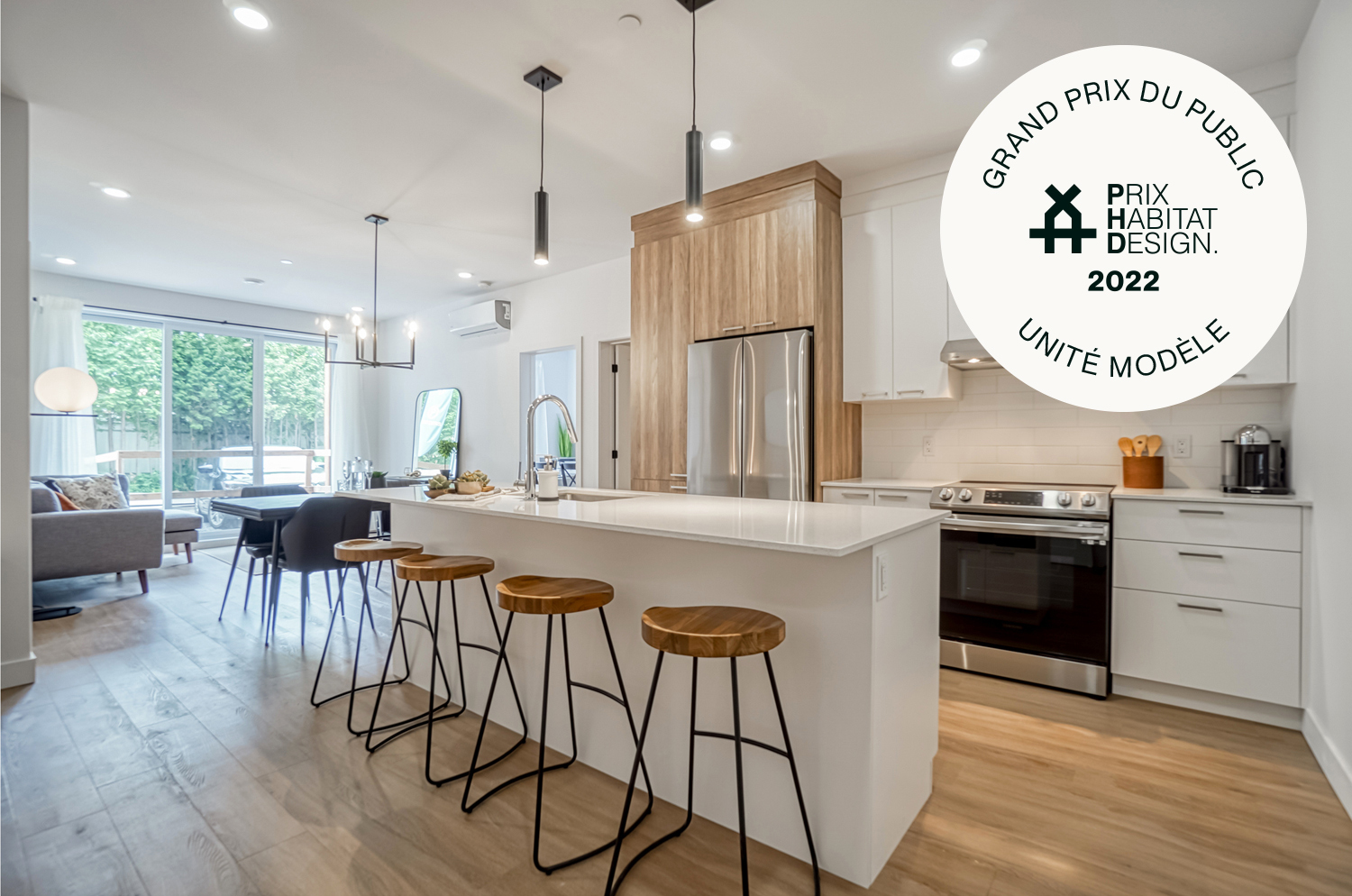 Aera St-Constant a eu l’honneur de recevoir le Grand Prix Habitat Design - Choix du Public pour son condo modèle lors de la cérémonie des Prix Habitat Design 2022.